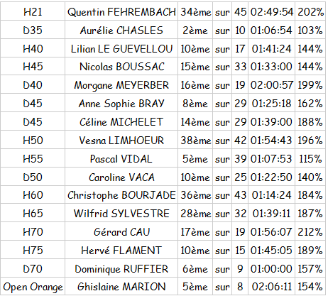 Cette fois-ci c’est Aurélie, pourtant surclassée, qui monte sur le podium en s’emparant d’une très belle seconde place. Pascal a également réalisé une jolie performance en terminant à seulement quelques minutes du podium.